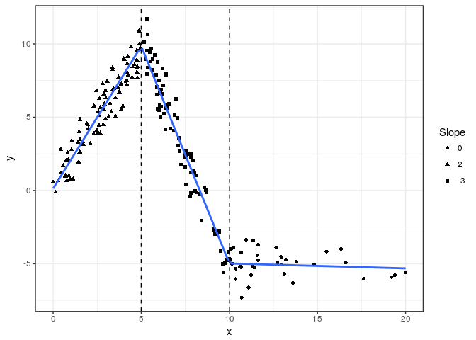 lspline(x, c(5, 10))2 -2.9666750 0.0503967 -58.8664832 0.0000000