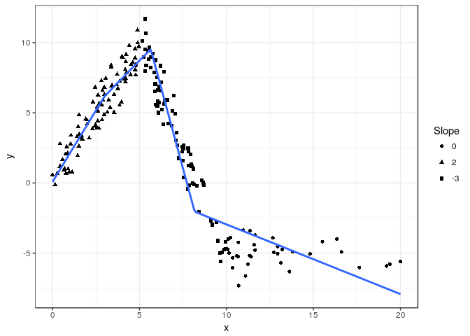m2 <- lm(y ~ lspline(x, c(5,10), marginal=TRUE), data=d)