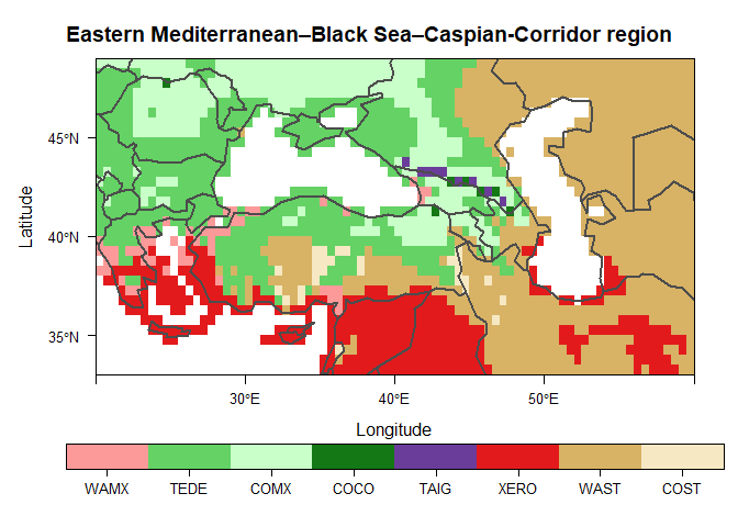 Create a biome map of the Eastern Mediterranean–Black Sea–Caspian-Corridor region for the period 1991-2020 using the CRU TS v.4.05 dataset (Harris et al. 2020)