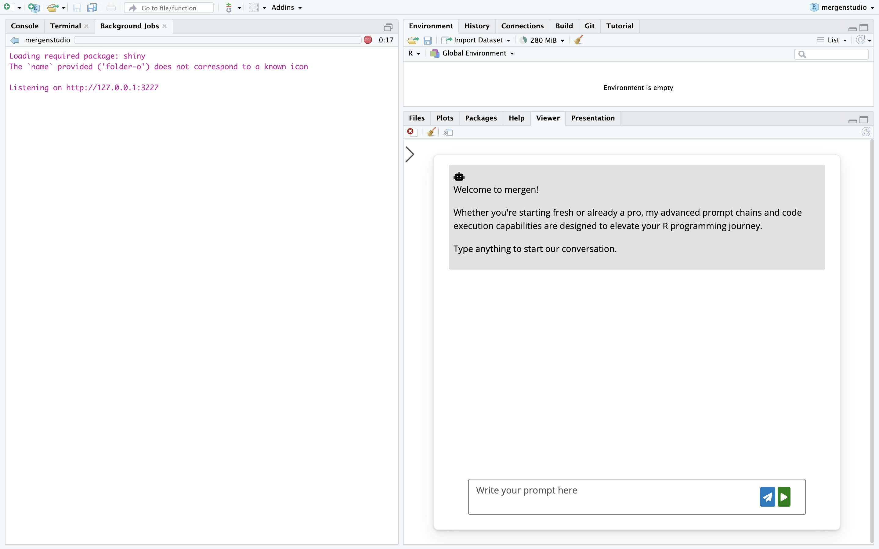mergen Studio is an RStudio Addin wrapper for the mergen package.