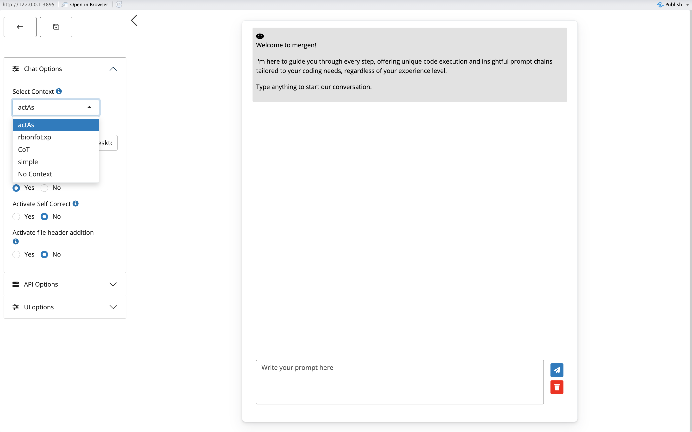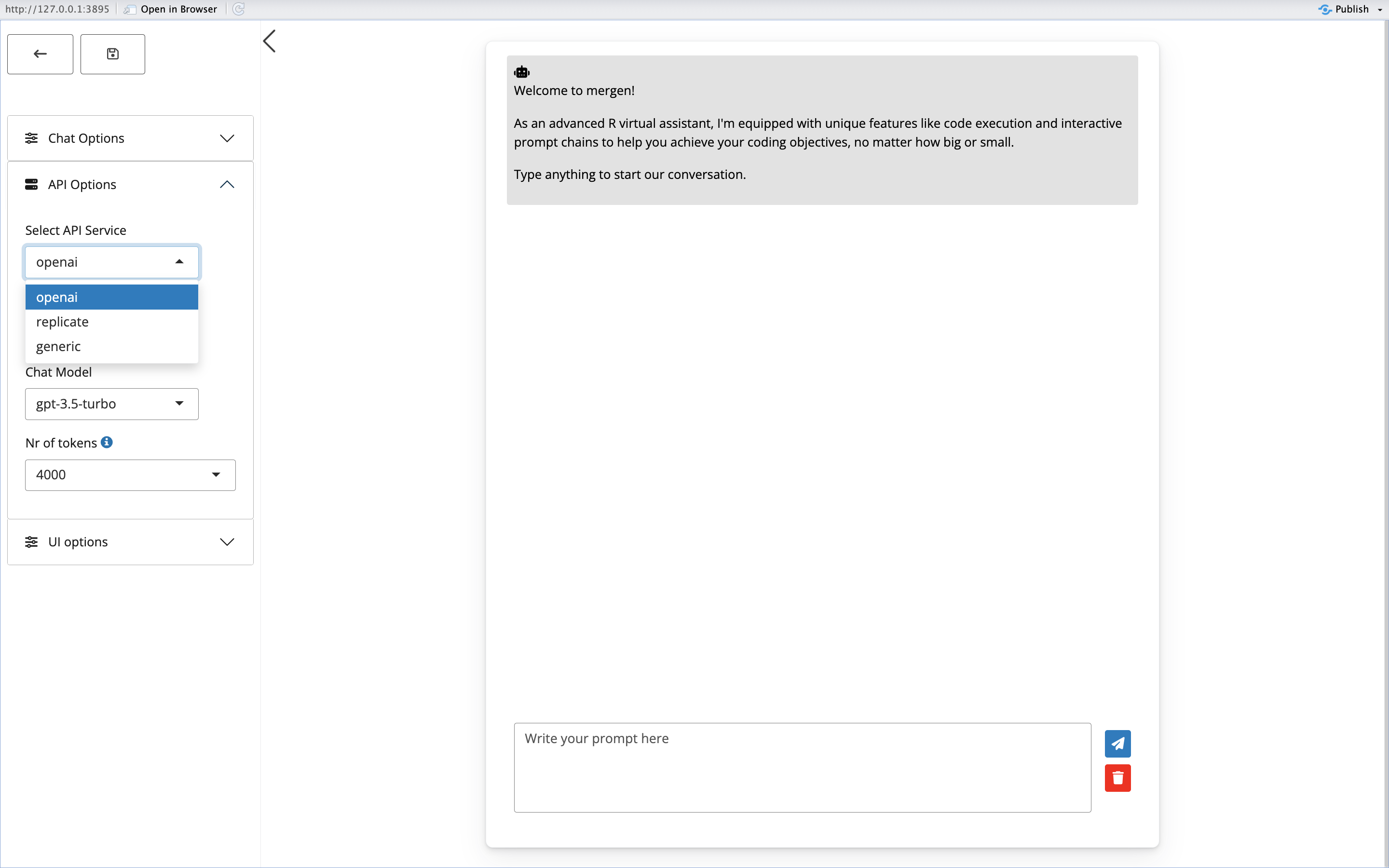 In the video below, we show you how to open a chat via mergenstudio, and save some default settings which will persist for subsequent chat sessions.