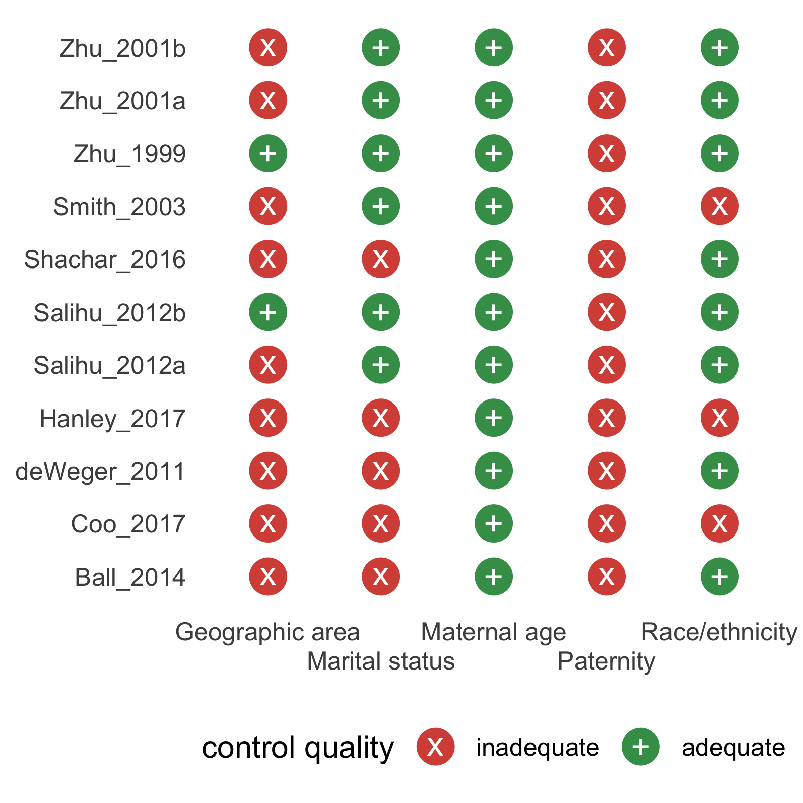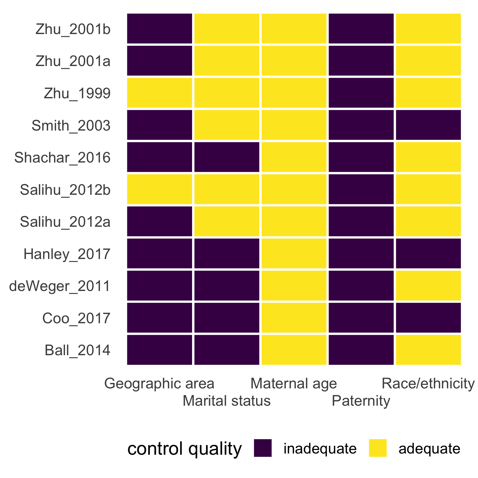 #>  1 Sociodemographics Maternal age Y             Zhu_2001a    adequate