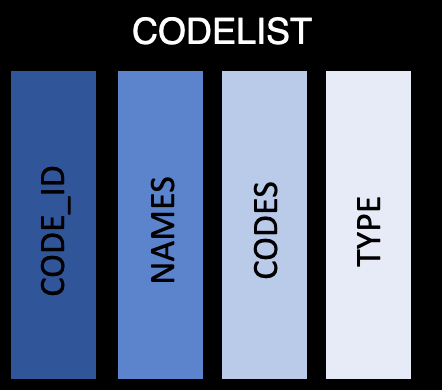 code_id: ID for the code list to match the id in the codelist table