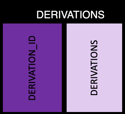This table has all the derivation information, with one row per derivation ID and the following information: