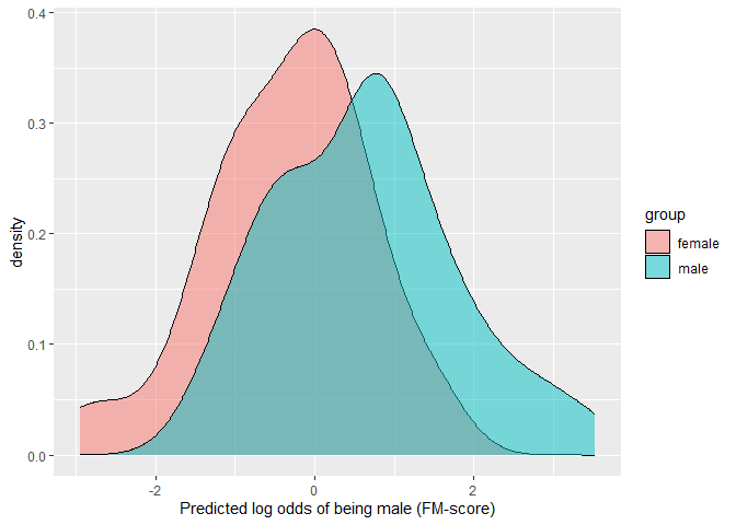 Predictive approach as implemented with regularized methods also allows for examination of group-membership probabilities and their distributions across individuals. In the context of statistical predictions of sex, these distributions are an updated variant to gender-typicality distributions used in gender diagnosticity methodology (Lippa & Connelly, 1990).