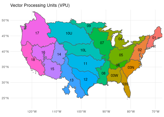 below for a low resolution vpu map (also nhdR::vpu_shp