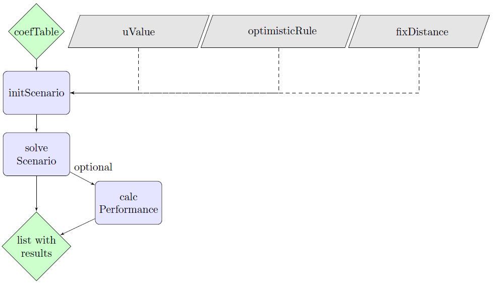 The returned list with results contains different information on the optimization model. It first repeats the settings of the initScenario(). These include: