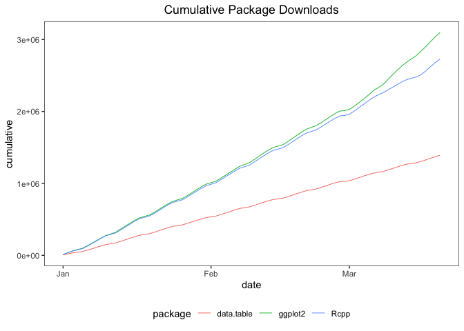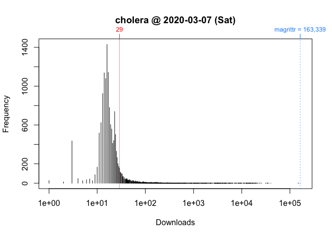 ::cran_downloads(packages = "HistData") cranlogs