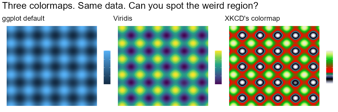 patchworktitle = "Three colormaps. Same data. Can you spot the weird region?",