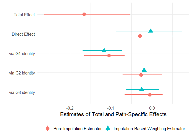 # causal paths analysis using both the pure imputation estimator and the imputation-based weighting estimator