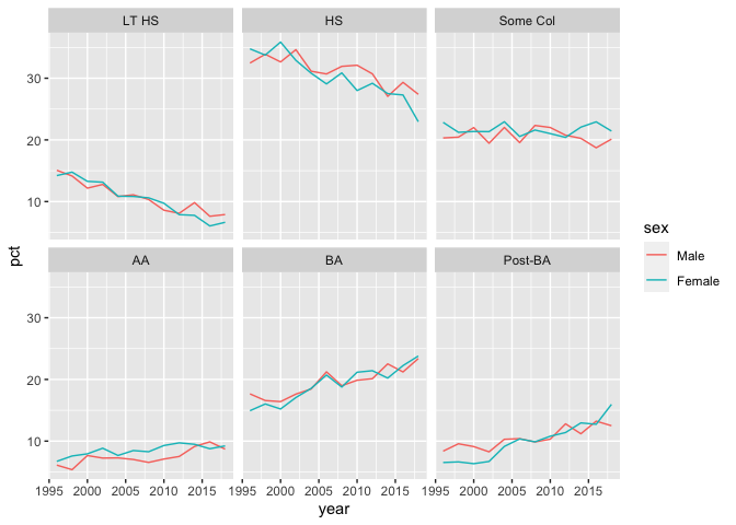 #> educ6 year n Married `Widow/divorced/Sep` `Never Married`