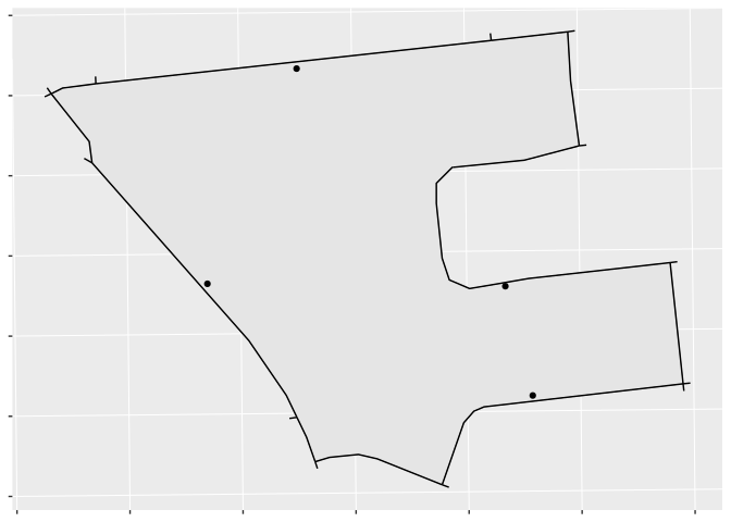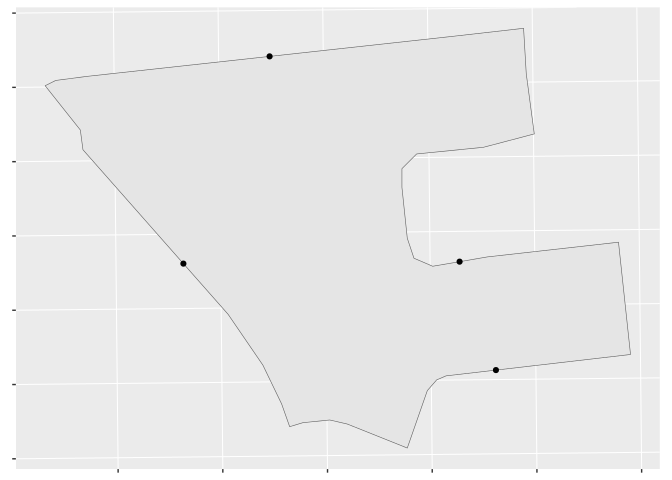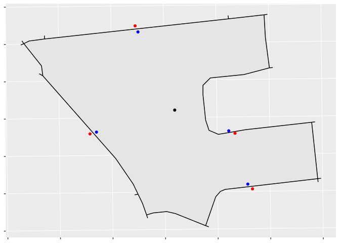 If a region is unpopulated or if it is no valid PHHs can be found, the function will return the region’s “default point.” If the region’s centroid is inside it, the default point is the centroid. If the centroid is outside the region, we use a simple algorithm to choose a point that is approximately in the region’s “pole of inaccessibility,” or farthest from each border: we randomly sample 100 points inside the region, and choose the one that is farthest from any border.