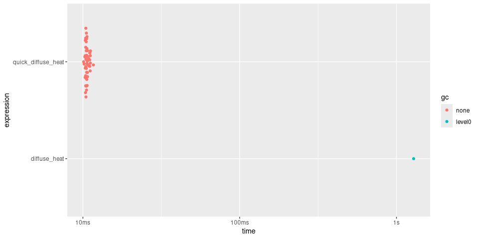 )#> Warning: Some expressions had a GC in every iteration; so filtering is