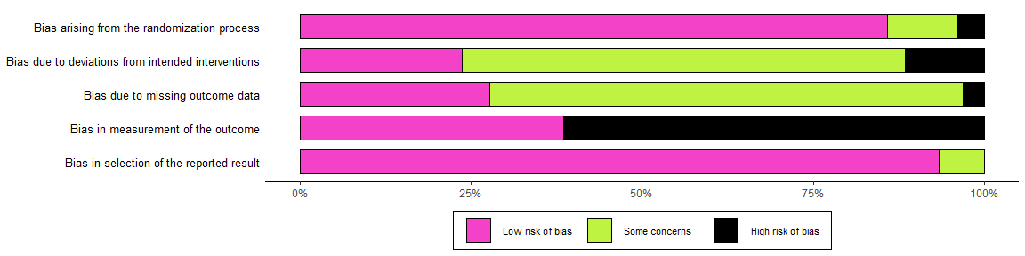 <- rob_summary(data = data_rob2, tool = "ROB2", colour = c("#f442c8","#bef441","#000000"))