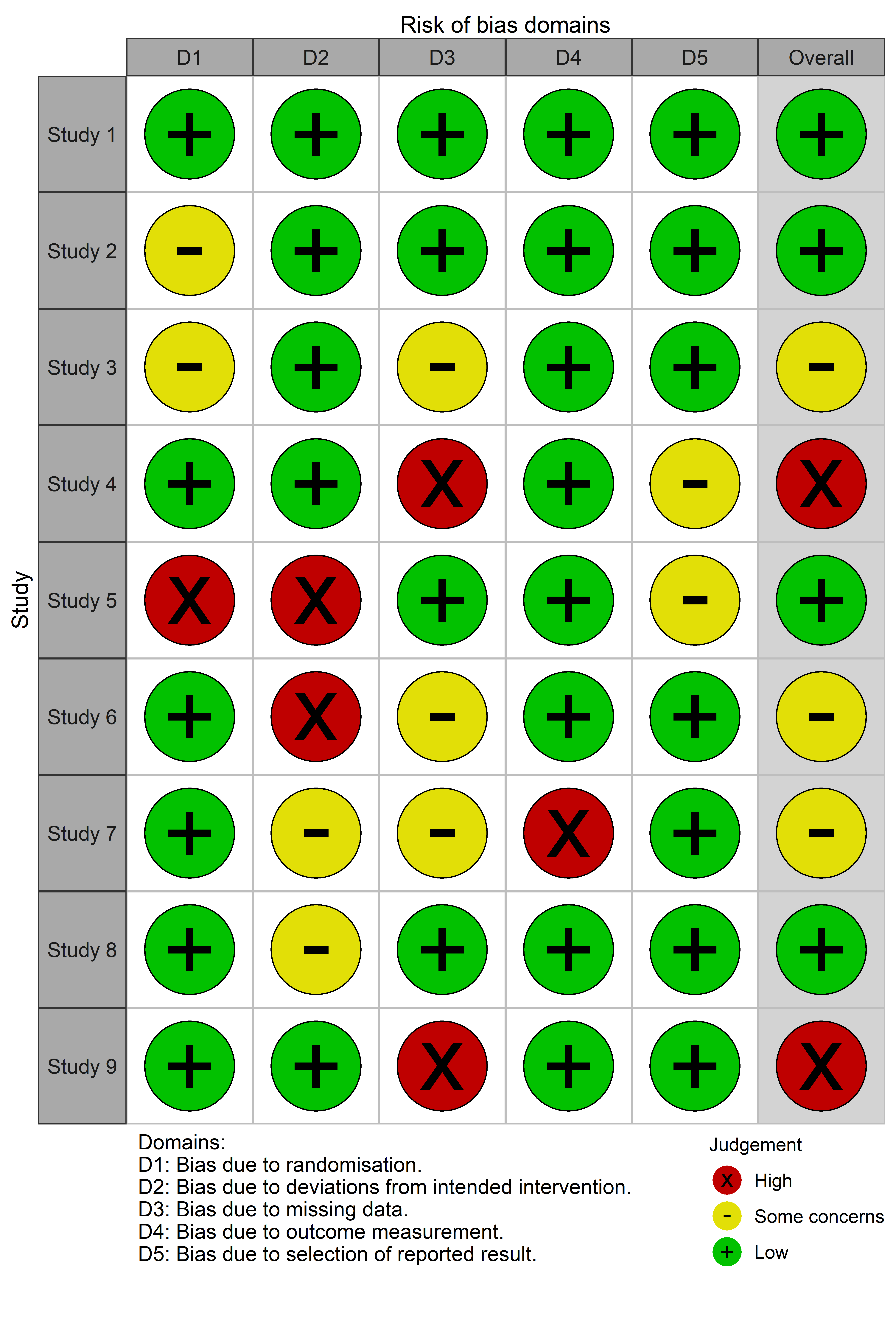 <- rob_summary(data = data_rob2, tool = "ROB2")