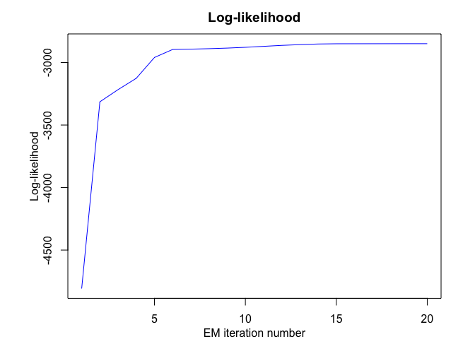 #> EM: Iteration : 20 || log-likelihood : -993.186583974542