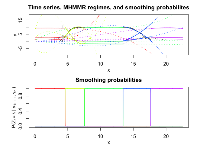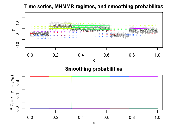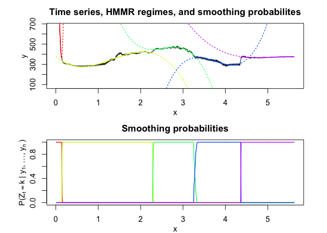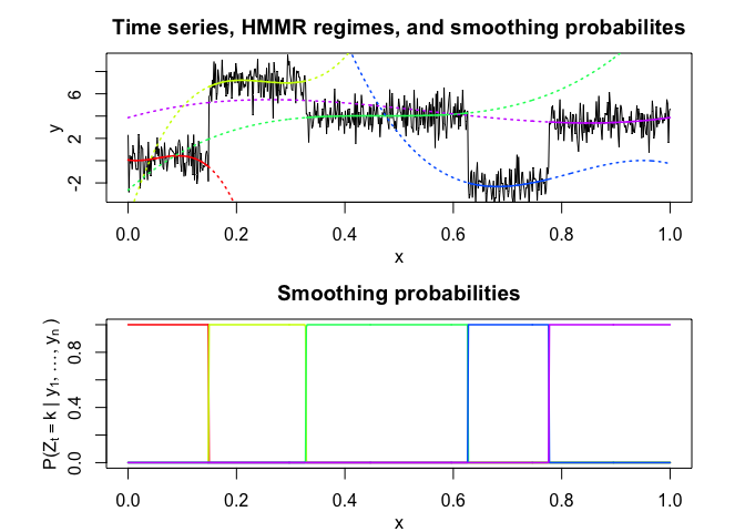 selectedhmmr #> The HMMR model selected via the "BIC" has K = 5 regimes