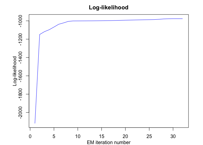 #> EM: Iteration : 31 || log-likelihood : -976.5893387433