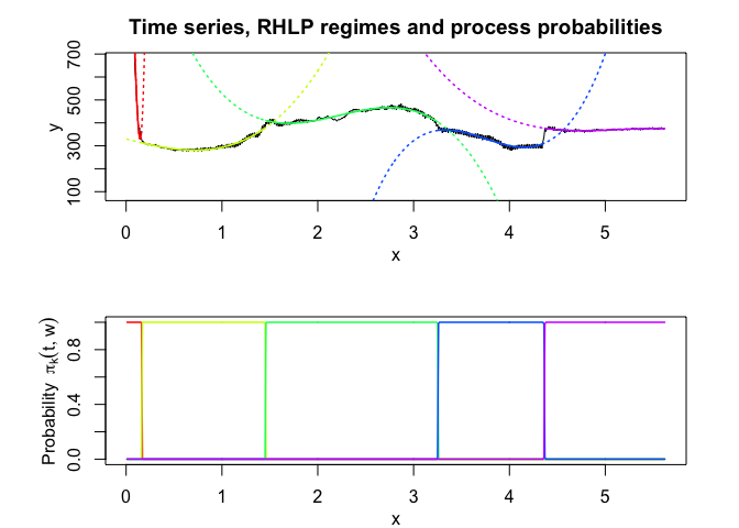 selectedrhlp #> The RHLP model selected via the "BIC" has K = 5 regimes