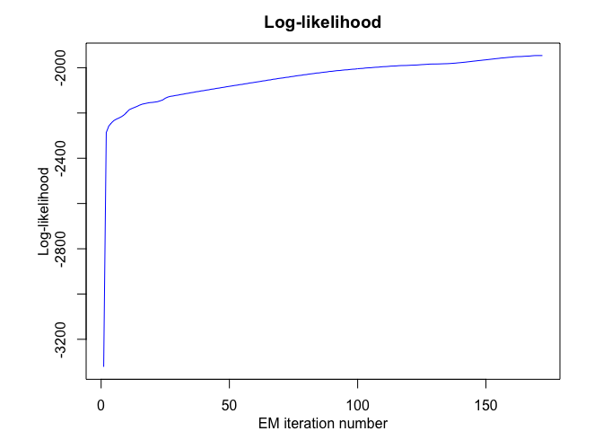 verbose, verbose_IRLS)#> EM: Iteration : 1 || log-likelihood : -2119.27308534609