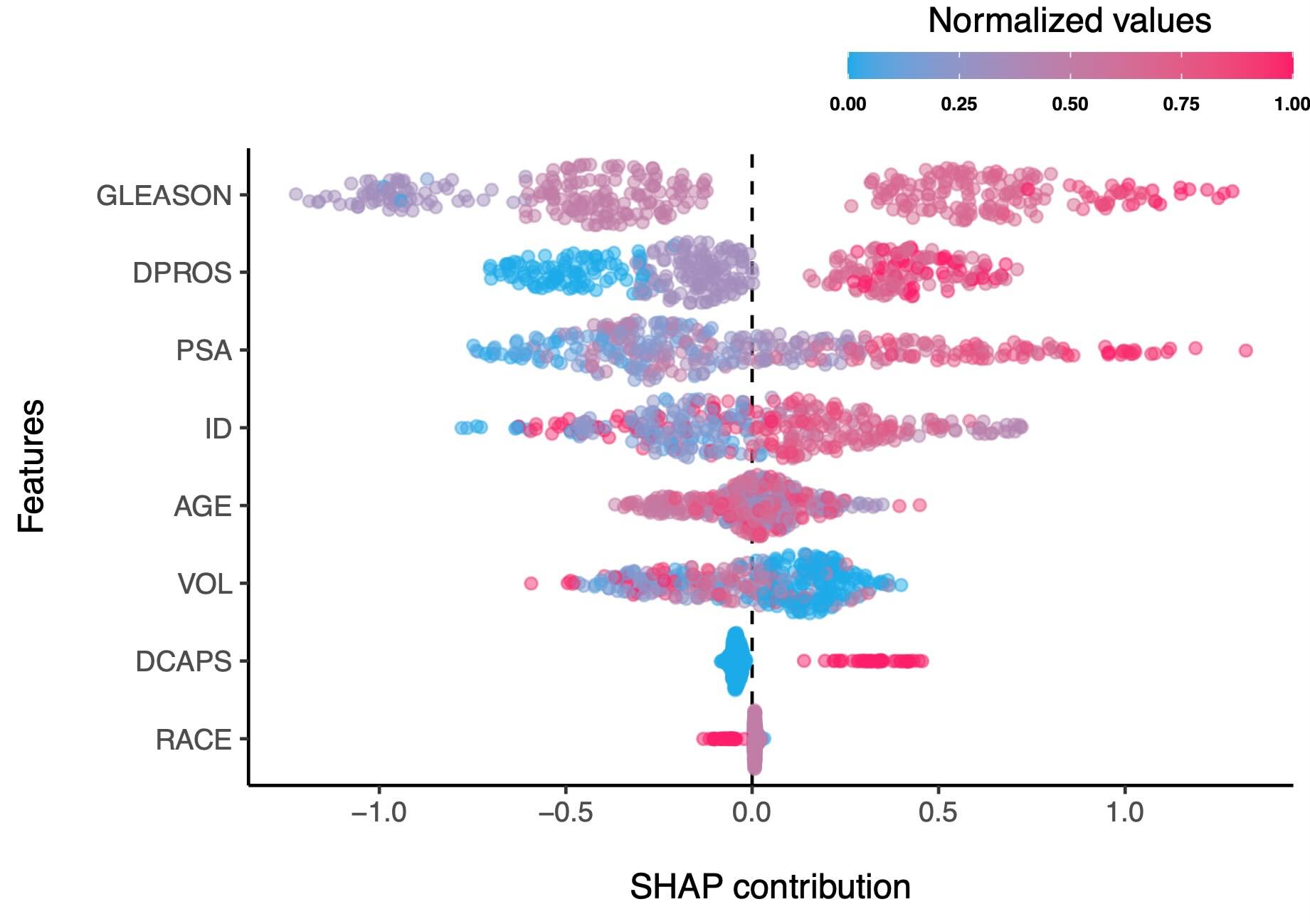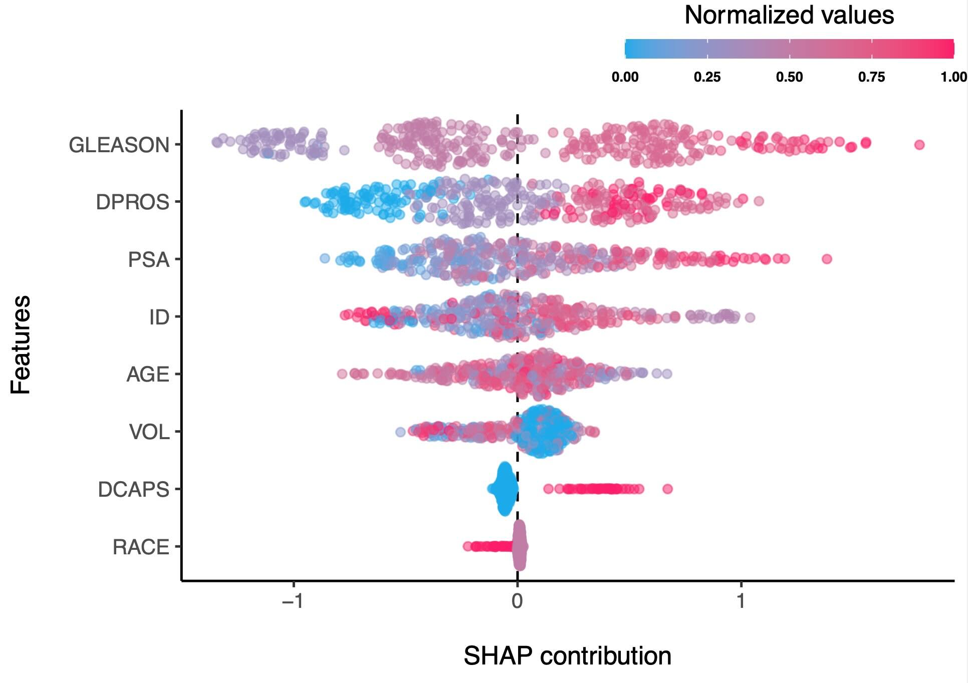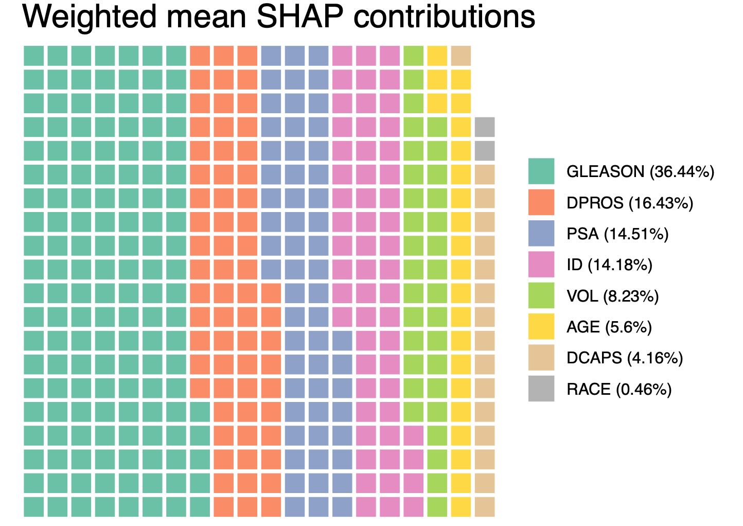 However, if we check the difference between “PSA” and “ID” features, the difference is insignificant, although “PSA” has a slightly higher weighted mean SHAP contribution: