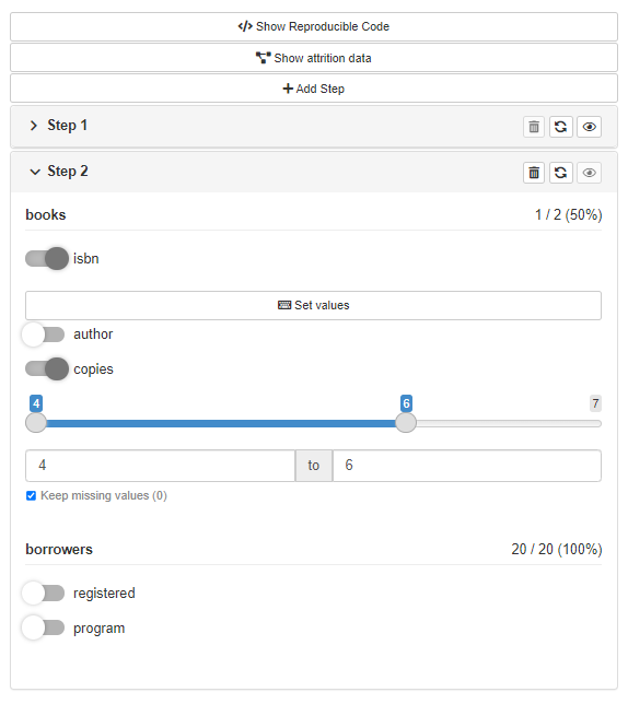 If you’re interested in more features of shinyCohortBuilder please visit the package website.