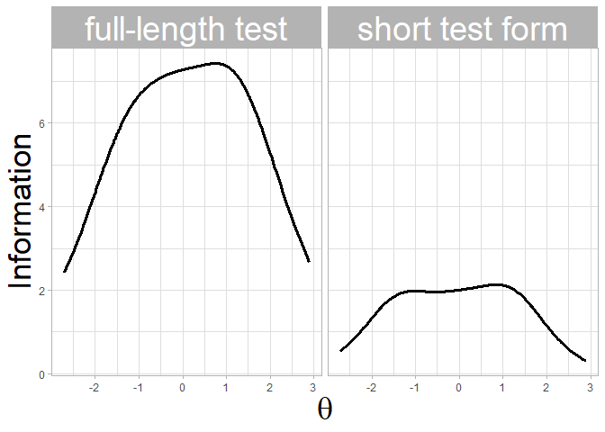 The IRT procedure based on the definition of levels of interest of the latent trait (i.e., \(\theta\) targets, here denoted as \(\theta\)-target procedure). The selected items are those most informative in respect to the \(\theta\) targets. This procedure can be further categorized according to the methodology used for the definition of the \(\theta\) targets: