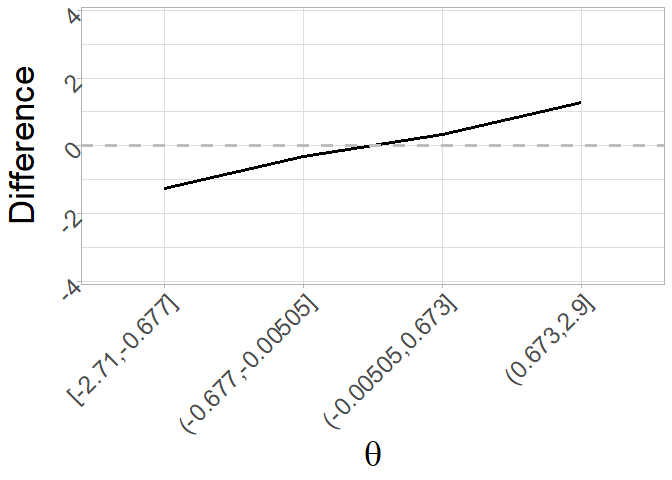 as a function of different levels of \(\theta\). Default is to plot the difference as a function of 4 levels of \(\theta\):