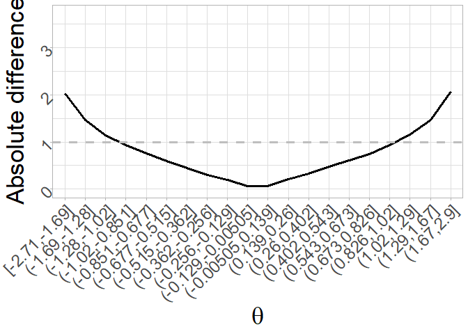 to plot, for instance, the absolute difference for 20 levels of the latent trait: