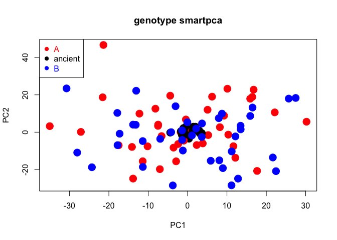 <- smart_pca(snp_data = pathToGenoFile, sample_group = my_groups, sample_project = my_ancient)