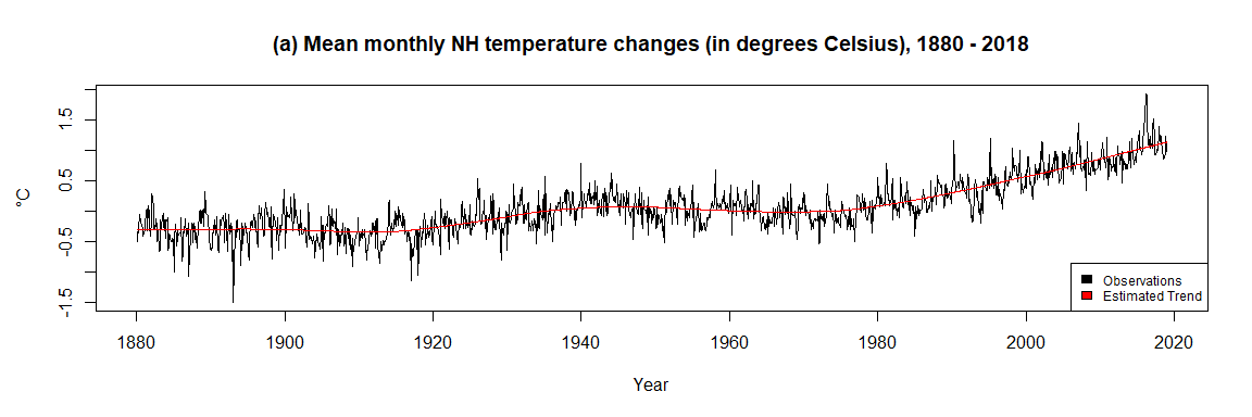 Hemisphere (NH) from 1880 to 2018. The data was obtained from the