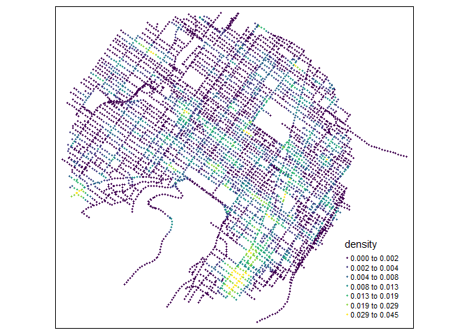 tm_dots(col = "density", size = 0.05, palette = "viridis",