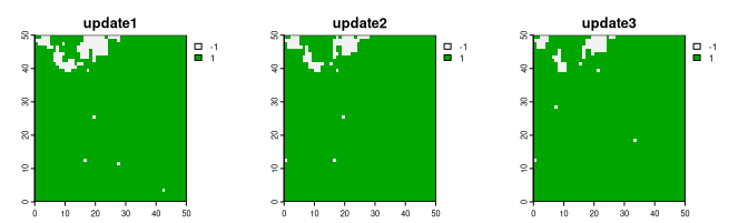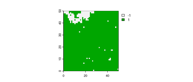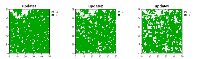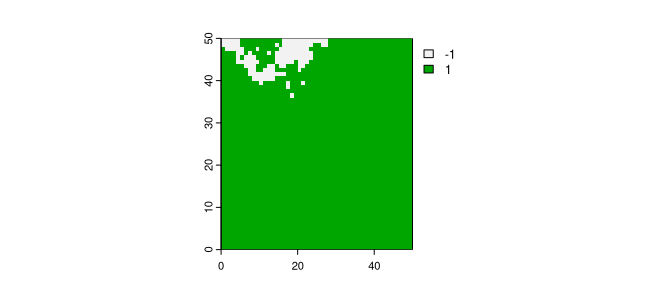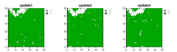 , returning just one raster as the output. However, when given a value larger than one, it returns many rasters. Each new raster is the next iteration of the Ising model of the previous one.