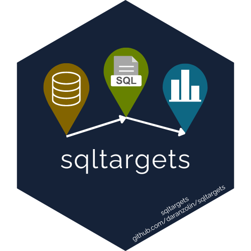 sqltargets makes it easy to integrate SQL files within your targets workflows. The shorthand tar_sql() creates two targets: (1) the ‘upstream’ SQL file; and (2) the ‘downstream’ result of the query. Dependencies can be specified by calling tar_load() within SQL comments. The template engine can be specified using the sqltargets.template_engine option (either ‘glue’ or ‘jinjar’).