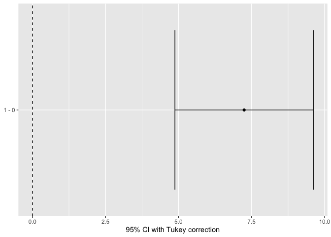 However, when more than two variables are entered into the model, the outcome will diverge somewhat from other methods of computing pairwise comparisons. For traditional pairwise tests you need to estimate an error term, usually by pooling the standard deviation of the groups being compared. This means that when you have other predictors in the model, their presence is ignored when running these tests. For the functions in this package, we instead compute the pooled standard error by using the mean squared error (MSE) from the full model fit.