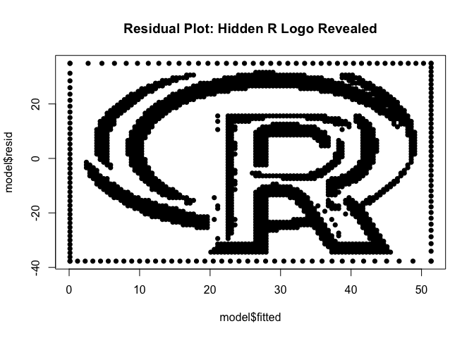 The residual plot reveals the original R logo with a slight border, enhancing the image recovery.