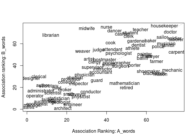 S_words A_words, B_words Relative Norm Distance (Garg et al. 2018) “rnd” yes rnd(), rnd_es()