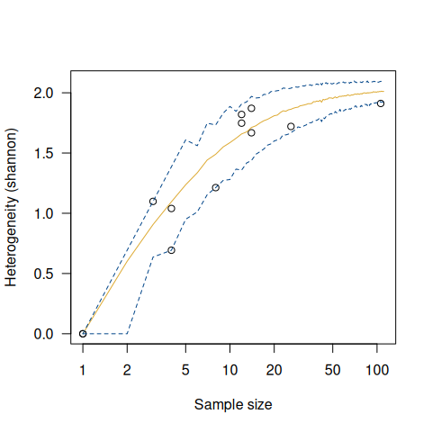 evenness (Brillouin, Shannon, Simpson, etc.), richness and rarefaction
