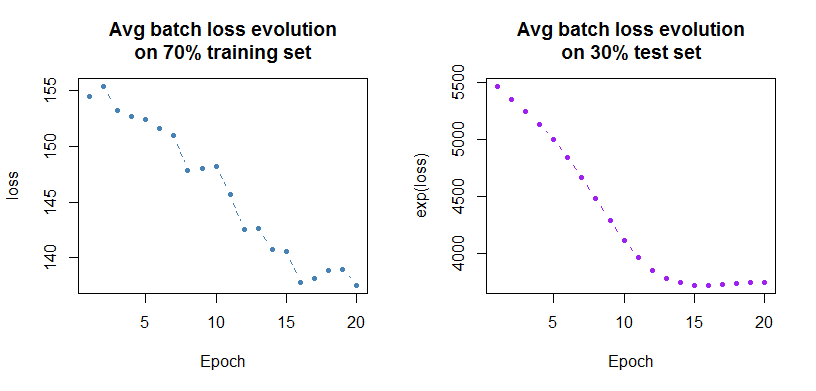 loss      <- model$fit(data = dtm, optimizer = optimizer, epoch = 20, batch_size = 1000)