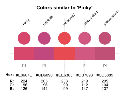 seecol(pal = pal_pinky, # a color palette / list of palettes / keyword