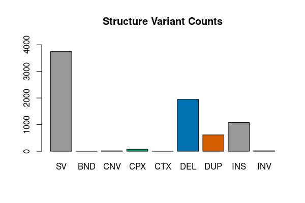 res vcfplot(res, main = "Structure Variant Counts", col = 1:7)