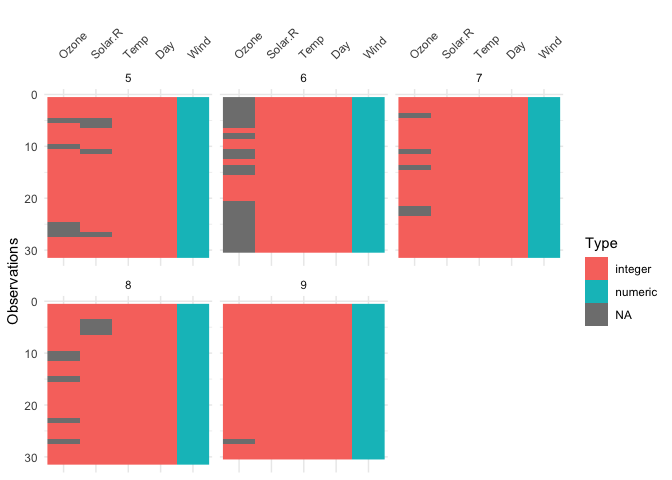 vis_dat(airquality, facet = Month)