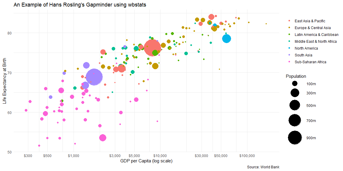 title = "An Example of Hans Rosling's Gapminder using wbstats",