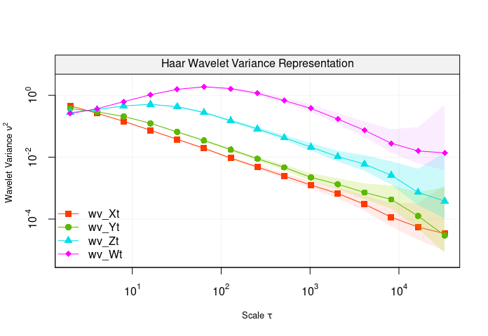 compare_wvar(wv_Xt, wv_Yt, wv_Zt, wv_Wt)