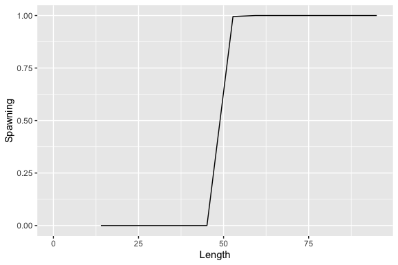 population ypr_plot_schedule(population, x = "Length", y = "Spawning")